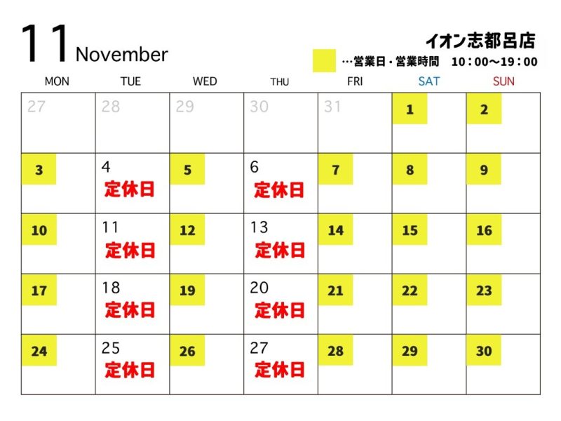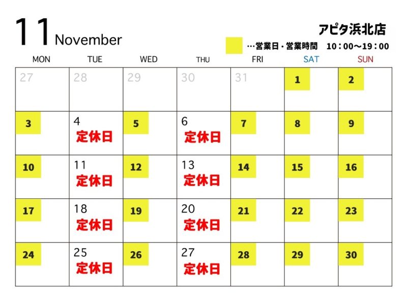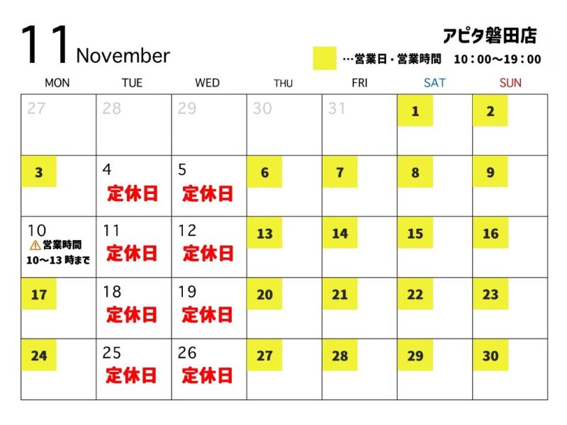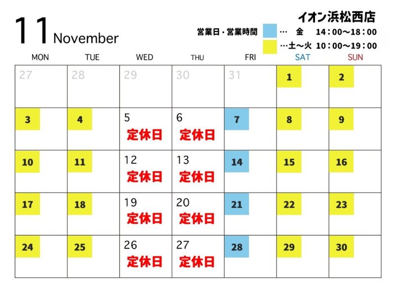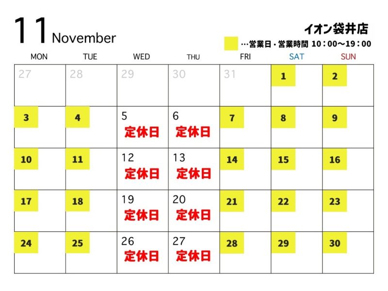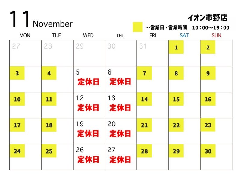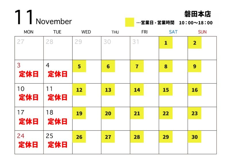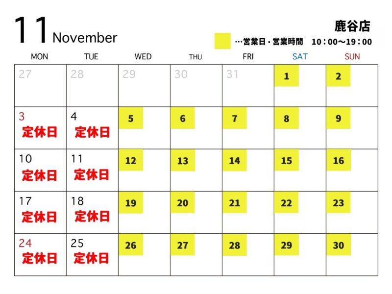 今月より、一部店舗において営業時間や休業日が変更となります。